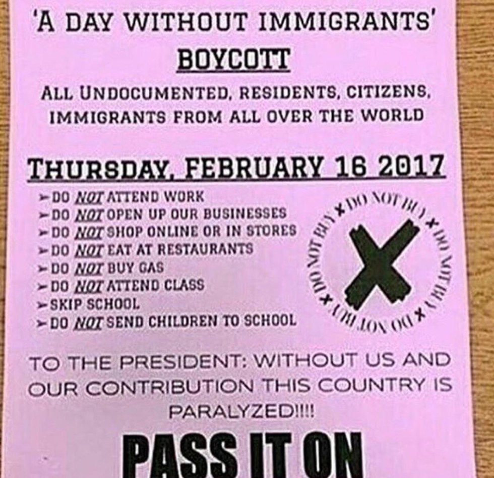 I first heard about the protest event through social media and next by messages shared among family members who live in different states across the nation. I quickly learned that many cities in the US were making this happen. This was the flyer shared that spread 'a day without immigrants' word quickly.