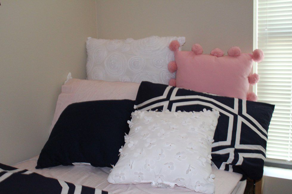I bought six pillows for my dorm room and my sheet set came with a sham as well as my comforter set so I had plenty of pillows. They make your bed stand out and it's more comfy having more than a pillow or two to fall back on. I found the pillows featured at Target and Michaels for all under $15 each.