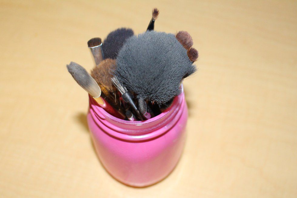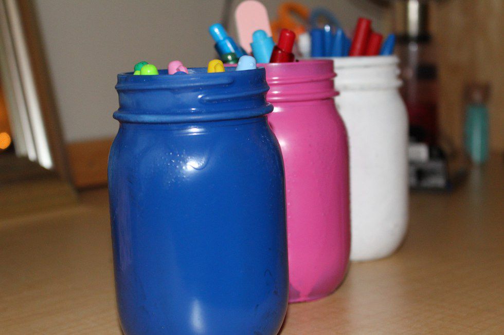 Mason jars are useful holders for so many different things in a dorm room including, pens, pencils scissors and even makeup brushes. I bought my mason jars for a $1 each at Michael's along with a few cans of spray paint. I spray painted each of the mason jars and voila! A cute little holder.