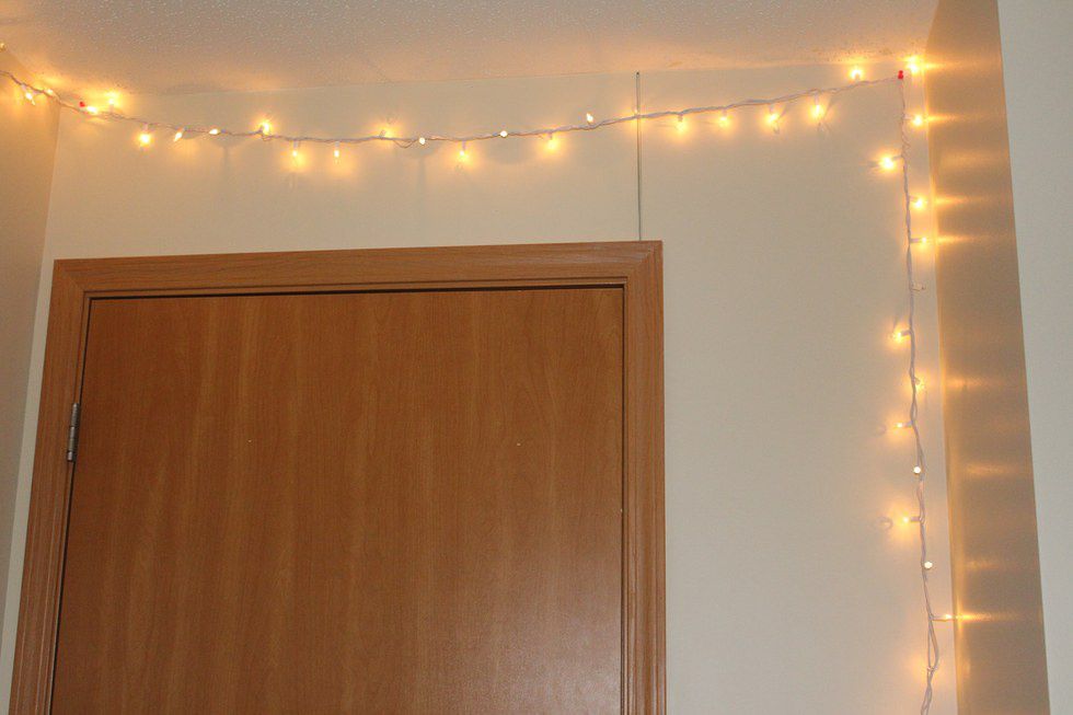 Christmas lights can be used year round in a dorm room. I strung lights around the perimeter of my dorm room and used about two strands. I currently have the all white lights and I love them. You can buy Christmas lights at most stores year round for $3-$5 a pack in any color. I love the lights because they give a little something extra to your dorm room and make the room cheerful.