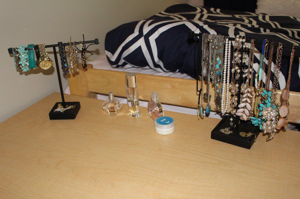 Jewelry organizers have saved my life. It is such an easy way to keep everything in one place where it cannot get tangled together. It’s such a pleasant way to display your necklaces, rings, bracelets and watches. I found these jewelry organizers for $7-10 each at Hobby Lobby.