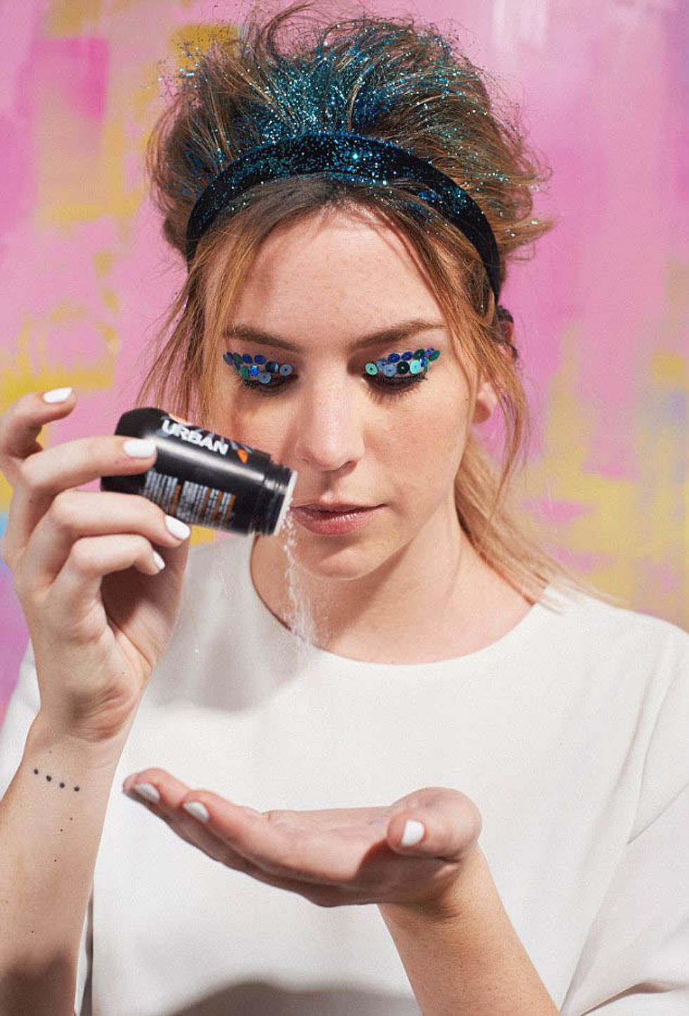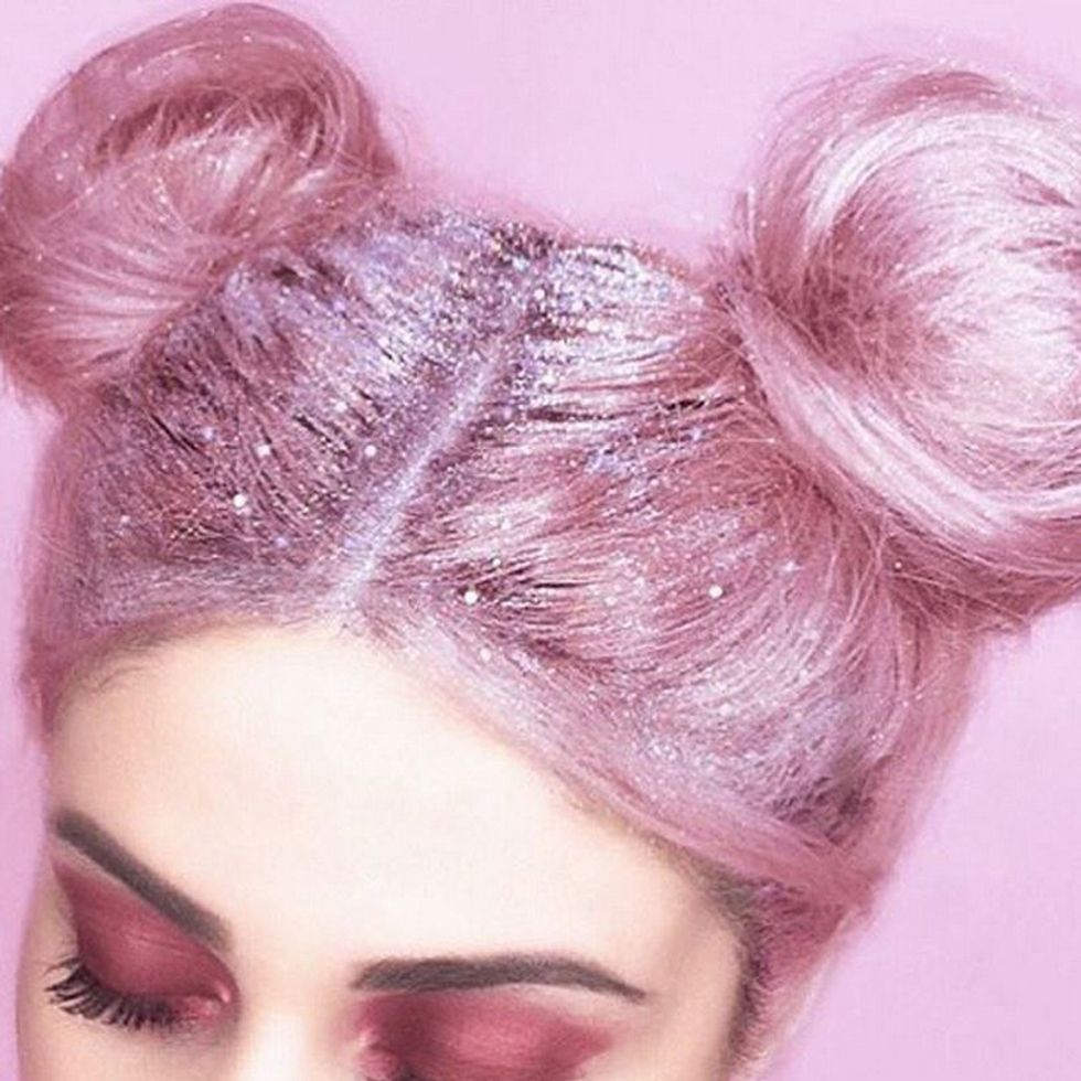 Whether you need to cover up some roots for a party this year or just want a fun party look, you've gotta try this. All you need is a little hair gel or vaseline to hold the glitter on your hair and then apply as much glitter as you'd like. If you put some in your hand and apply it with your fingers rather than just dumping it on your head and calling it a day usually works better, but hey you do you. No glitter shame here.