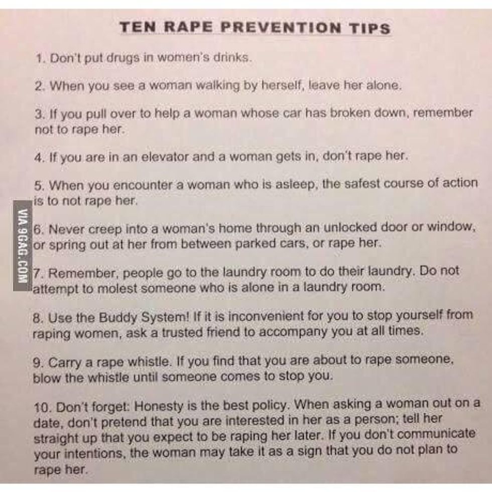 This is Sarah Silverman's brilliant and controversial tweet of "10 Rape Prevention Tips": a list of how to help men avoid being a rapist. We might laugh at her tongue-in-cheek parody, but we know too many women will be affected by this.