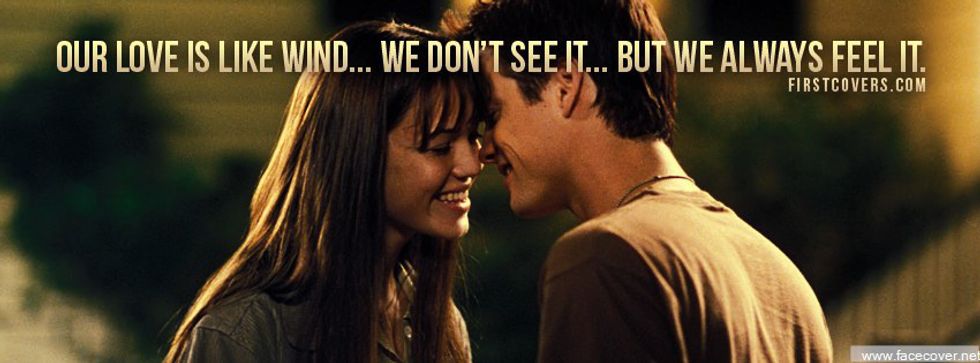 How about that time in A Walk to Remember, at the beginning, when Landon asks Jamie to help him and she replies with, "Just promise not to fall in love with me". Well that was easy for him to begin with. But then when he does fall for Jamie she has to tell him just how sick she is (Leukemia). And he loses it, because he doesn't want to lose her. The moment we learn how deep their love is is when Landon says, "I was in love with her, so deeply in love that I didn't care if she was sick. I didn't care that we wouldn't have long together. None of those things mattered to me. All I cared about was doing something that my heart had told me was the right thing to do. In my mind it was the first time God had ever spoken directly to me, and I knew I wasn't going to disobey."