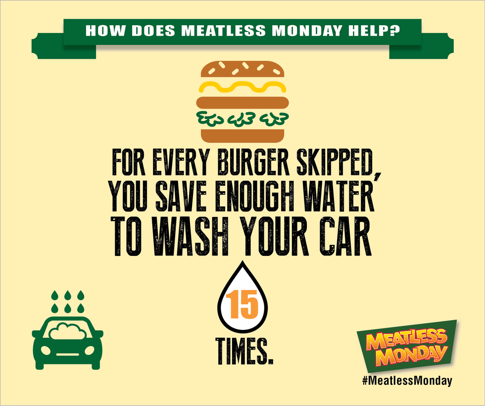 If a vegan lifestyle isn't for you, you can still cut meat out of meals every Monday. Why? It takes A LOT more water usage to produce a pound of beef compared to a pound of vegetables. Reduce our carbon footprint with Meatless Mondays by saving resources like fossil fuels and fresh water.