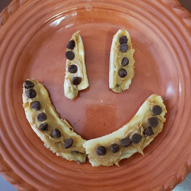 Cut a banana in half (long ways) then smother with peanut butter and chocolate chips!