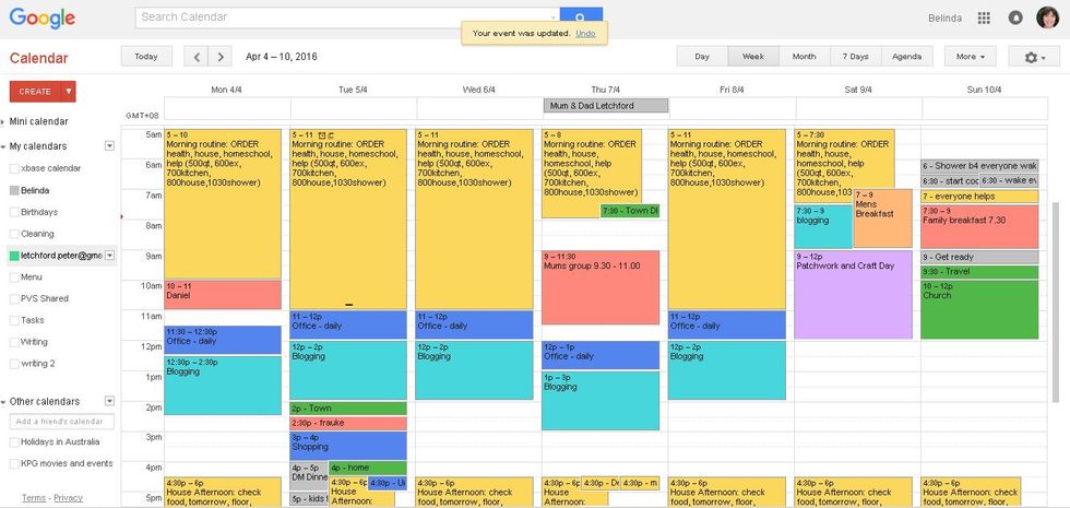 Setting a schedule is so important. Your body will get used to waking up at a certain time every week. Making a calendar through my phone helps me immensely. I like to use Google Calendar. It's clean, easy to use, and it keeps my life organized! You can use it on your laptop and through an app on your phone. It also syncs up with your Gmail account!