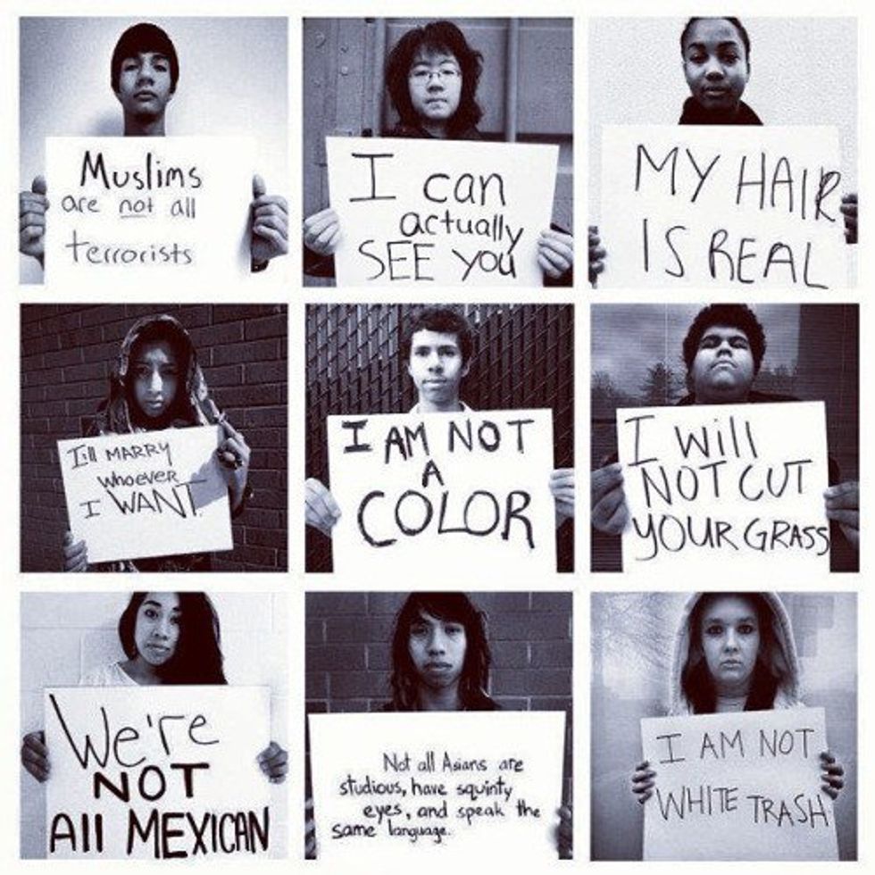 Race, gender, sexuality, religion, ethnicity, borders, educational status, oceans, language, class, age, all the things that make us different, and all the things that separate us don’t go unnoticed, and they shouldn’t. But these differences shouldn’t cause fear and hate upon one another, either. Although it's not easy, I think talking about this is important, I think we need to realize that we all have the same substance running through our veins, that we are all connected, and how that is deeper than our differences, that one person is not better than the other; I think we have all forgotten that we all bleed red.