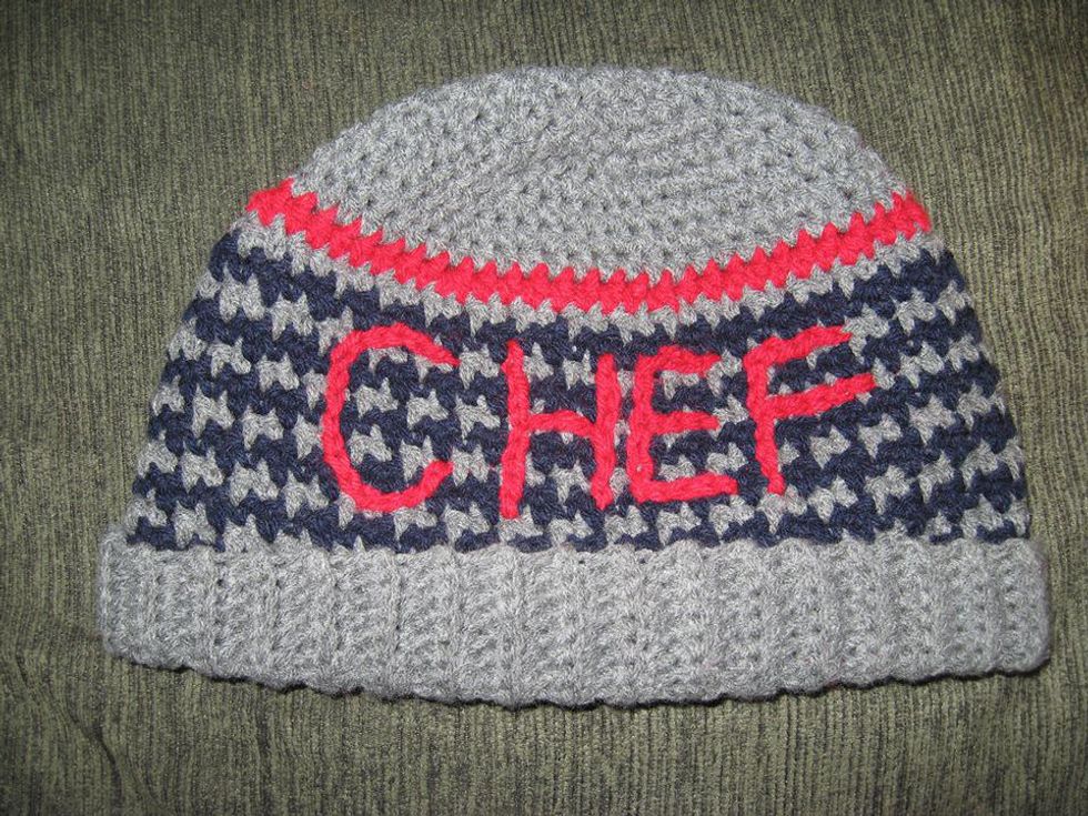 “I love crocheting because I love working with my hands and keeping busy. My other hobby is chainmailling. I love to make things, especially when I can share with family and friends. I made toques for several of my coworkers for Christmas, and they all loved them! Here is a pic of the toque I made for the Chef at work.” – Erin M.