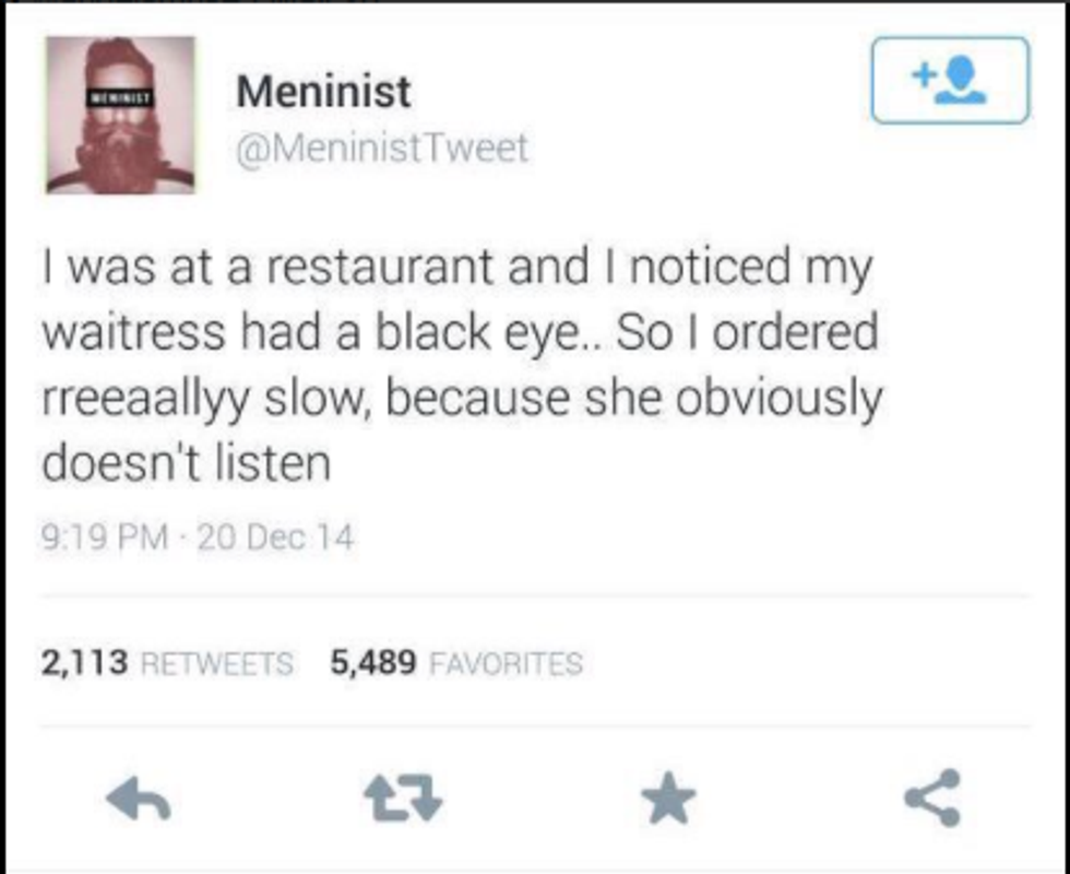 Feminism is the doctrine advocating social, political, and all other rights of women equal to those of men. It is the belief that men and women are inherently equal, and should have the same rights and responsibilities in society. Essentially, I want the same paycheck as a man with the same job as me, but I also expect to pay for my own dinner when we go out to eat. I want paid maternity leave, and I also think my future husband should have paid time off to get to know our child. Nothing about this sounds controversial to me. You can imagine my dismay when I discovered meninism, an online parody of feminism where various social media users tried to point out the hypocrisy of feminists. At first I was amused; most of the posts demonstrated that the writer didn't understand what feminism actually is. As I saw men joke that I should be grateful for attention from them regardless of the context, make rape jokes, and talk about how much they deserved women I became angry and alarmed. Words are words. A bunch of jerks online won’t make a difference so just brush it off, right?