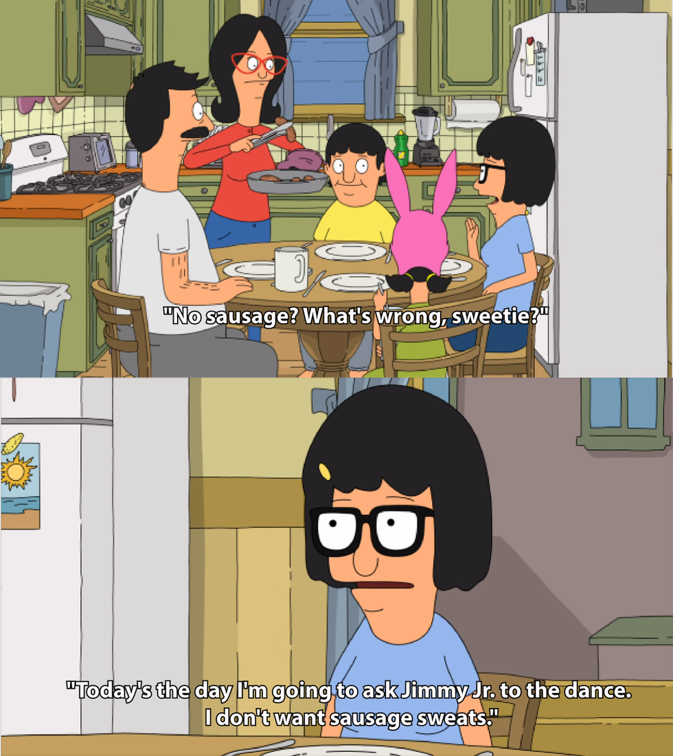 So recently I've been watching "Bob's Burgers" on Netflix. It's clever, ridiculous and highly entertaining. I've been particularly relating to one of the characters who also shares part of my name: Tina Belcher. She is the oldest child. She is a hopeless romantic with a powerful sex drive and minimal social skills. She likes horses, rainbows, butts, zombies, writing erotic fiction and movies. I feel like she's got life figured out, and we could all use a few tips on that, right? Here's a list of 11 things she has got down pat that we could all learn from.