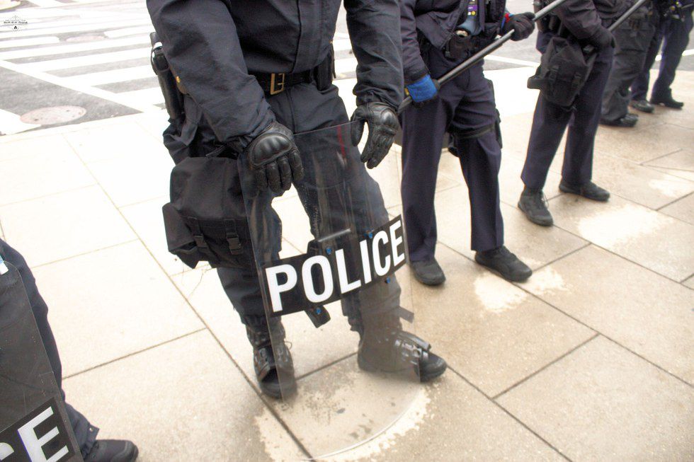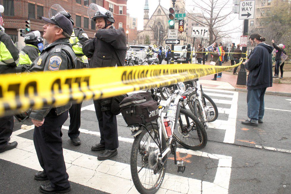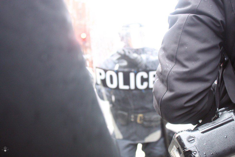 We kept moving, looking to capture as much as we could from today. At first, we kept on the streets and moved with the protest, but we thought about actually see the parade. We fell in line early and went through security, then made our way down to the parade. It wasn't until we had gotten inside we found out that there had been some damage done down on 12th, so we quickly turned around and went straight there. As we got closer, we could see riot police blocking the way, so we wouldn't be able to make it through.