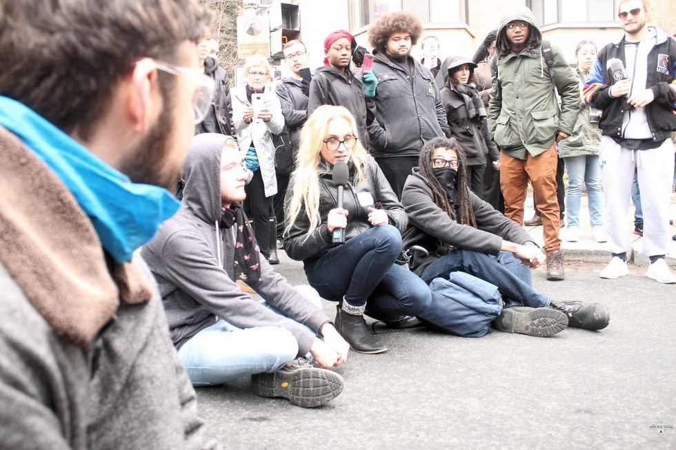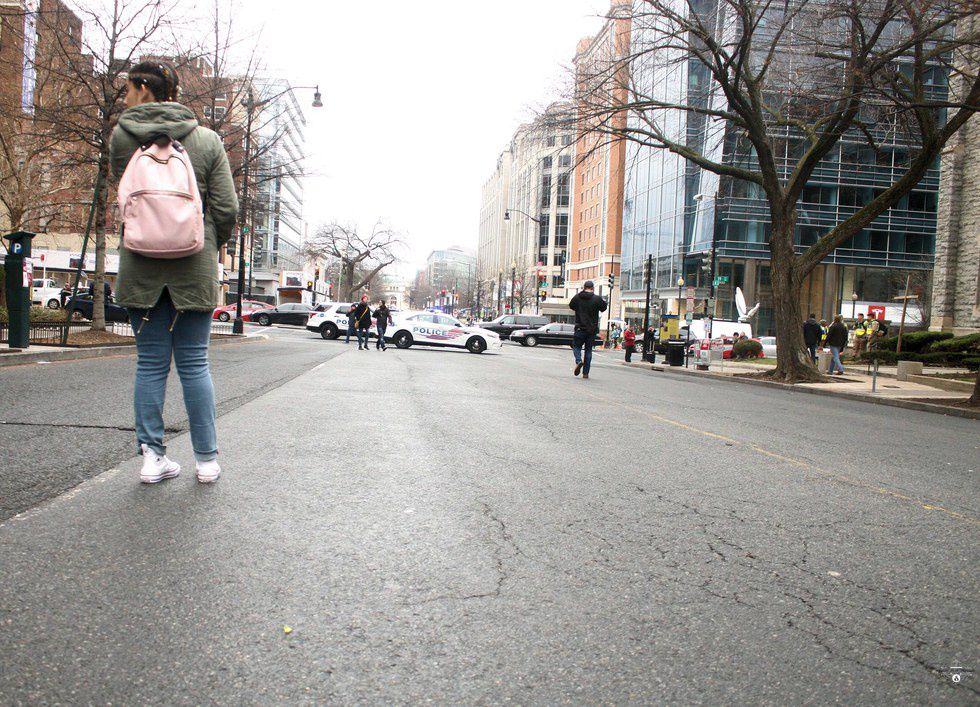 13th and Massachusetts turned into a gridlock. Cars were blocked by protesters (myself included) sitting in the street. Different groups sat in the road in different circles chanting. After some time, people started to move again to find a new place to "cause trouble". My friends and I stood around a little bit longer before heading back in the direction we came from.