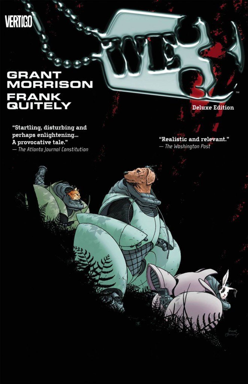 When you think about book reviews, the equation has one constant: a book, which ultimately contains language. It is hard to even consider a graphic novel a book, because of its limited use of language. Graphic novels tell their stories through not only text, but also pictures. "We3" is a graphic novel by Grant Morrison, which tells the story of three animals who were scooped up to become government experiments; to become war machines.