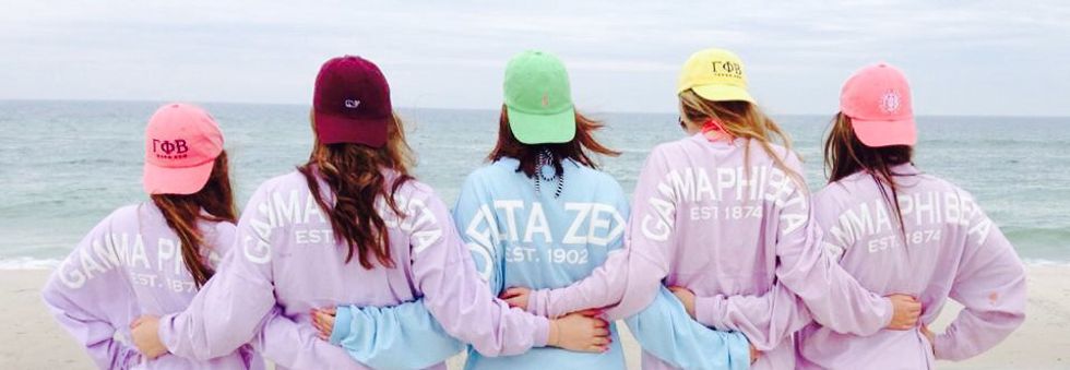 A lot of people think sorority girls wear their letters to show off. But I know I certainly don't. Me wearing my letters has nothing to do with you (sorry). It has to do with myself in relation to others. It is my way of saying, "I am a part of something bigger and I am so proud of it. If you want to share that with me, thank you. If not, it doesn't matter." My letters are for me. I'd still be in a sorority even if I didn't wear them. I wear them because they are my way of expressing my love for my sorority, and my personal desire to feel connected to it wherever I am. Putting on my letters reminds me of being home. They make me more confident. They make me more beautiful. They connect me to the thousands of other women in this world wearing the same letters. They are a token of my happiness. And they are not for you to judge or limit. They are not there to attack you, or be a condescending reminder of my extracurriculars. They are not an act I put on for you. They are mine, and I will treat them as I wish.
