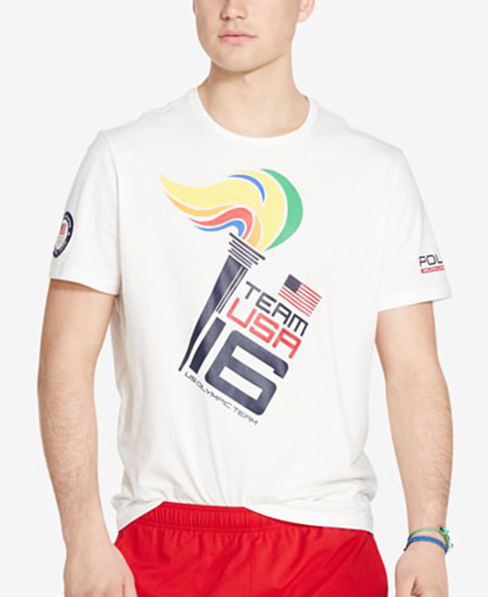 This classic T-shirt is designed by Polo Ralph Lauren, the same designer that chooses the outfits that Team USA wears to walk in the opening ceremonies.