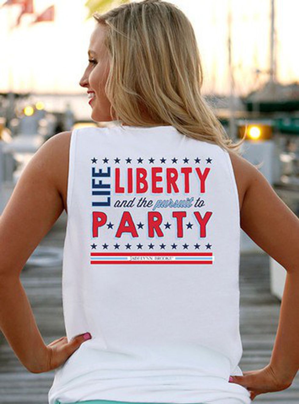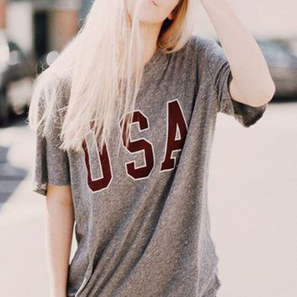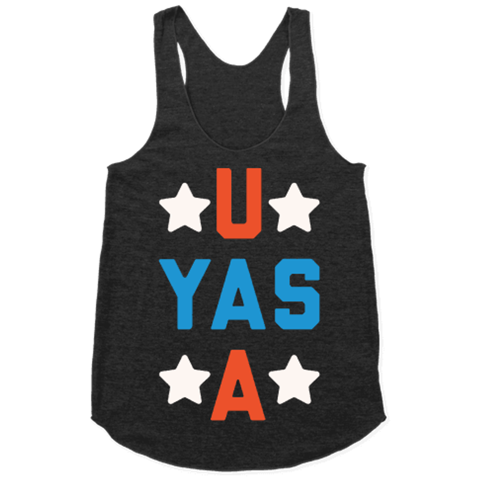 Every four years, the Olympics begin again, and, amid the fireworks and spectacle of the opening ceremonies, we all settle in for two weeks in front of our televisions to be amazed. As the gold-medal count rises, so does the American patriotism in the hearts of citizens across the country and the world, including this writer. Don't find yourself lacking the apparel to proclaim the fact that you're "American AF" to all you come in contact with. And bonus: You'll definitely be able to re-wear these to theme parties all year long.