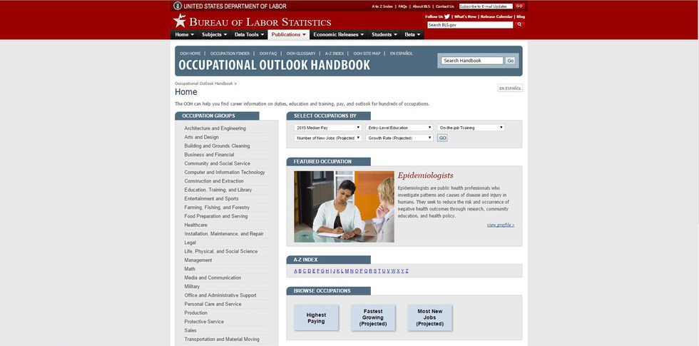 The United States Department of Labor has actually formed an Occupational Handbook with the Bureau Labor of Statistics to help citizens find the right careers. The online handbook has numerous features you can personalize in a search engine like the level of pay, education needed, and job growth, for example. Once you find a career field, it gives you even more optional specifics like the work environment, how to become the job title and similar occupations. Because the handbook is tapped into the BLS, all the information is current. You are essentially looking at the current job rates and yearly wages from a research center that analyzes the current and future state of the economy. Isn't that neat?