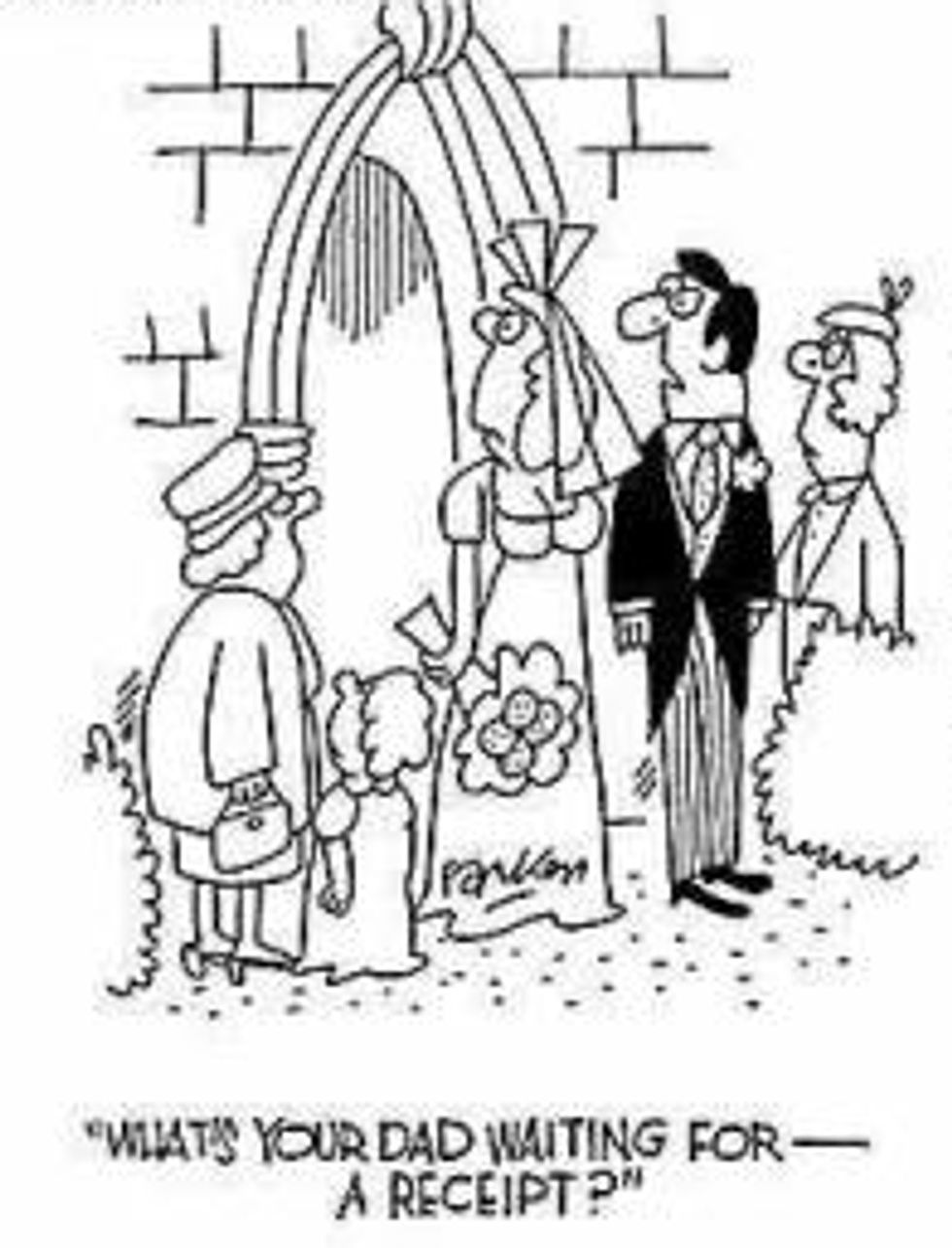 Isn't it cute how many of these traditions stem from the taking/stealing/giving of women? In not-too-ancient times, women were viewed as being the property of their father until they were given (along with a dowry) to the husband that had been selected for them. A father "giving away" his daughter at her wedding was a representation of a very real transaction (see "Traditions I will not be taking part in").