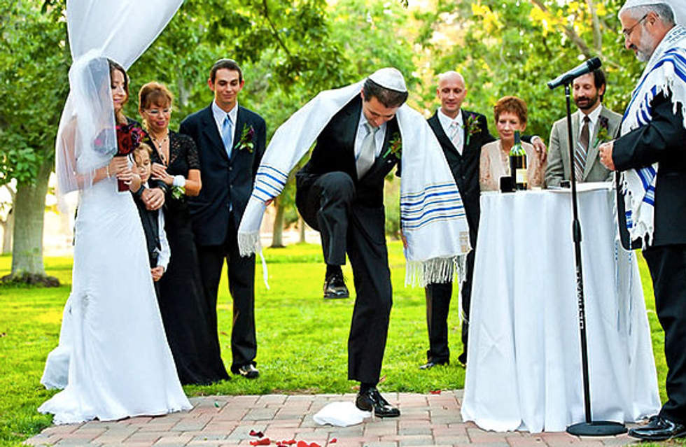 A traditional Jewish wedding is concluded by the groom and occasionally the bride as well stomping on a glass, generally wrapped in a cloth for the sake of safety and convenience, followed by shouts of "Mazel tov!" This tradition could be symbolic of multiple meanings, but the most common interpretation is that this practice is a symbol of the destruction of Jerusalem. Some couples even recite, "If I forget thee, O Jerusalem," preceding the stomp.