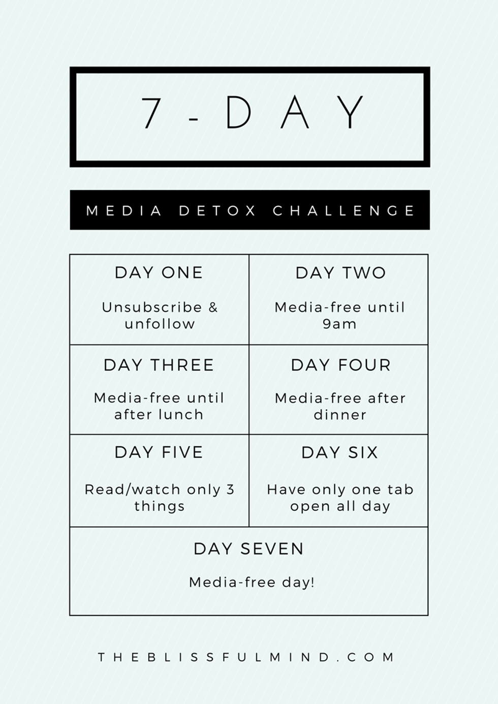 So if you are feeling overwhelmed with everything the world throws at you through media or if you just feel up to the challenge try the week long detox. You might just be surprised how different your day is without it!