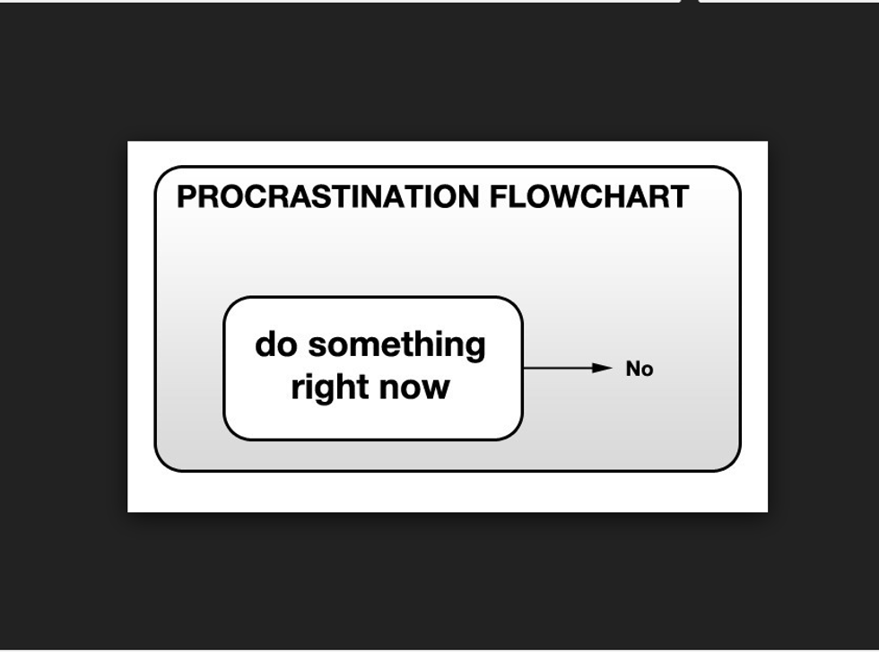 4. Thursday: "Pff I've got till Sunday to finish this, but I should come up with an idea" *gets distracted by something in my room*