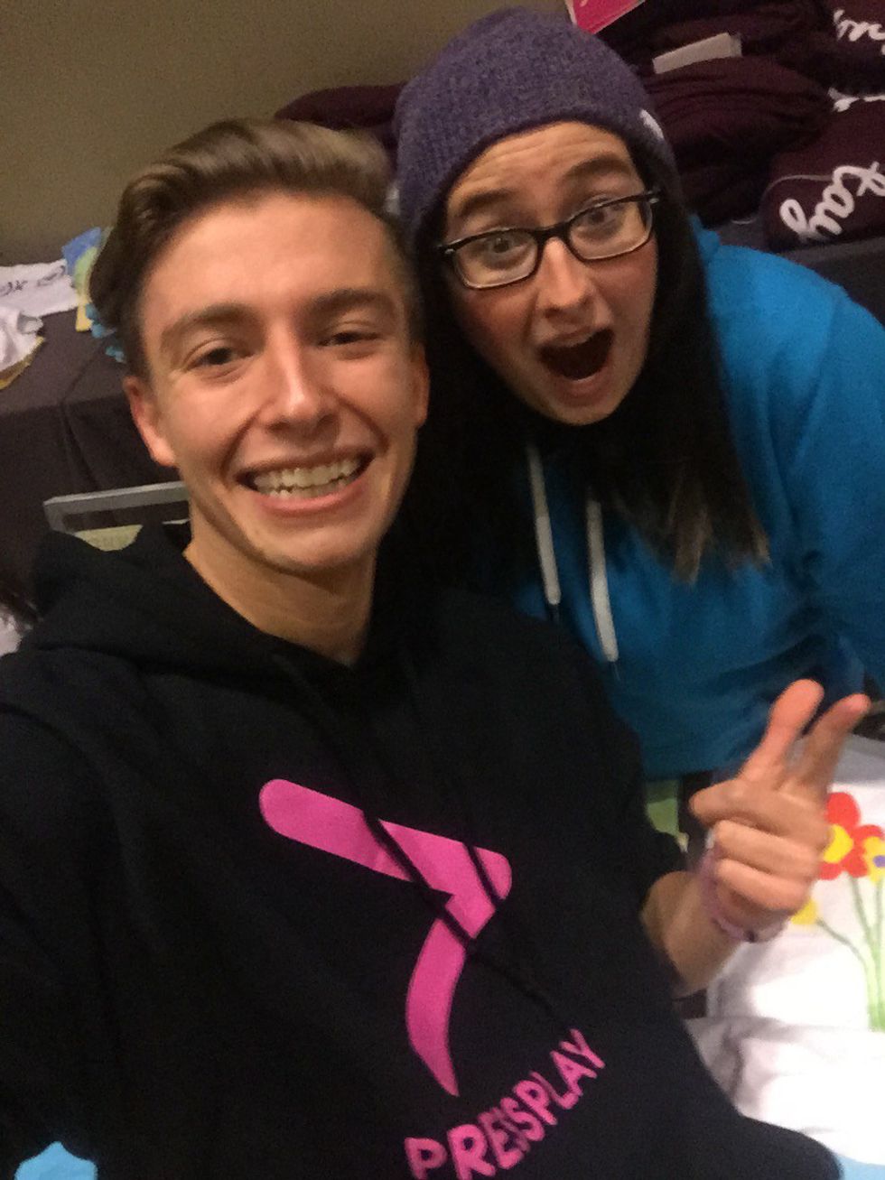 My weekend with PressPlay started around 7 p.m. on Friday night. I ended up getting to the hotel an hour earlier than I thought I would because traffic wasn't as bad as I thought. I met two sweet and humble girls, Jaden and Savannah, while waiting for 8 p.m. to roll around. They're are defiantly some forever friends that I wouldn't of met if I hadn't volunteered for PressPlay. Once 8 p.m. rolled around I had met up with the guy in charge, David, and went into the catering room for dinner. I had first met the talent at dinner that night. At first I felt a bit awkward because I had never met them before. Once they had started talking around the tables, they had started asking me questions and I had warmed up to them it was so easy to talk to them. After dinner, we had started setting up the merch booth with the ten boxes of merchandise that they had. So after about two hours we had the merch booth set up. While we were setting up the merch booth they had an event going on called URL, aka Up Real Late. URL is basically just a little hang out session with the acts that come down to the ball room to hang out. After URL was over and we finished setting up the merch booth it was around 11:30 p.m. and I headed home for the night.