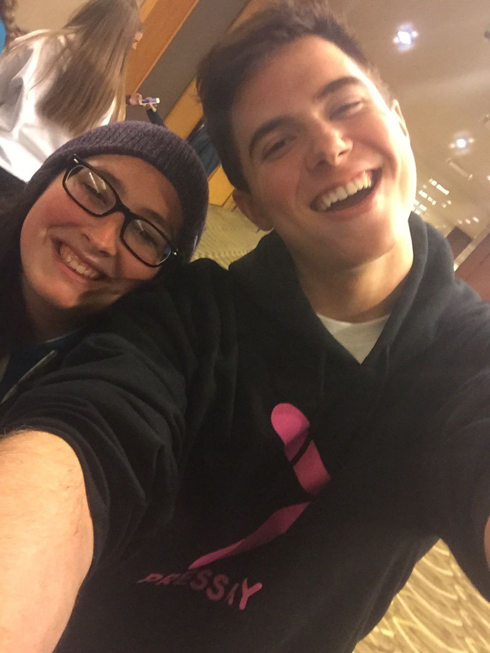 On Saturday, I had arrived around 8:45 a.m. and we had breakfast at 9 a.m. At breakfast, I feel way more comfortable and welcome after I had spent a few hours with the talent the night before. The talent is super nice, hilarious, humble, and down to earth. I loved getting to spend time getting to know them during meals and through out the day. From around 10 a.m. to 5:30 p.m. the event was going on. They had meet and greets first then they had the talents performing skits and songs on stage. The fans absolutely loved it! I was working the merch booth by myself that day when they usually have about four volunteers working it. I had no trouble working the merch booth, in fact I loved it. I had a blast. Through out the day the talent would come chill at the merch booth in the back of the room and help me out some which was pretty cool. At some point we had lunch too. From around 6-9 p.m. we had some free time with dinner being at 7 p.m. For dinner, everyone had sat down together and it was a Thanksgiving dinner. It was really good. After dinner we had about an hour of free time so a few of us went across the street for some ice cream. Than around about 9 p.m. it was time for Saturday night URL. URL for Saturday night consisted of some karaoke, marshmallow fights, card games, and just chilling. URL ended about 10:30 p.m. that night. We started packing up the merch around 10:15 so we finished up around 11 p.m. I ended up staying around about another 30 minutes saying goodbye to my new friends and the talent and taking pictures.(Joey, we still didn't get that picture before I left!) It felt so hard to say goodbye to my new found friends. At the end of the weekend I ended up have a few favorites out the talent, I won't say who just to keep it fair.