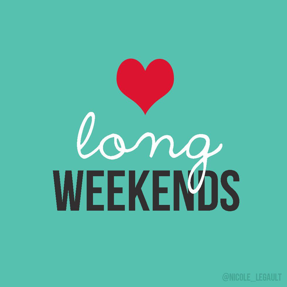 Everyday is important in our lives. Weekends let you relax from your routine work and engage in activities that are closer to our heart. Students are caught up with assignments over the weekend and they would have plenty of reading to do. They would be preparing for classes for the coming week, staff and faculty and other employees would also prepare for their coming week at work over the weekends. Few folks love the weekdays more than the weekends as it keeps them occupied. It is also very important to spend quality time with your family and children. Going out for a movie, or to the park or shopping helps people spend time and have fun. Well, the week has started now and all you people waiting for the weekend to start soon, here you go. Just keep yourself busy and the long weekend will be here sooner than u realize. Take Care! Happy Long Weekendssz!
