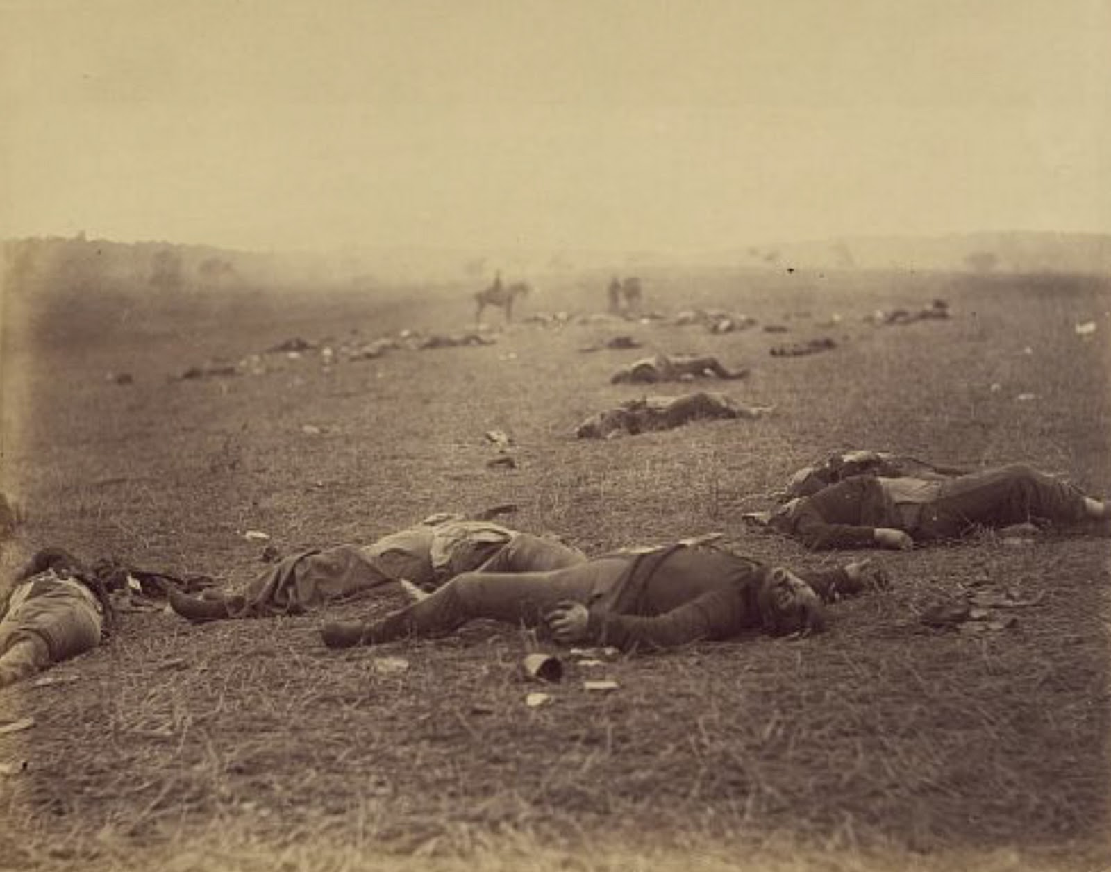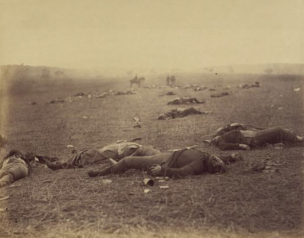See that picture? That's real. Those are real Americans. Dead and left out on the battlefield for days in the rain and sun. They were someone's husband, boyfriend, brother, son, or daddy. But no more. That's the truth of history.