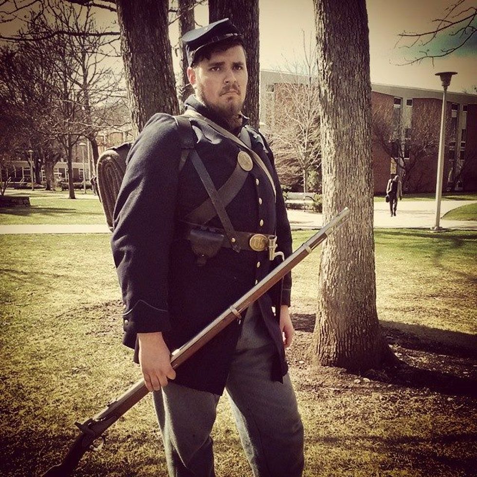 But other times, we'll just talk normally. We'll be honest about who we are in real life. If someone asks, I'll tell them I'm a 22-year-old student at Penn State University, and I'll tell them why I do this stuff. I tell them why I'm so emotionally attached to this conflict and the men who fought it - because it's a part of me and my own heritage. I help them connect to it too, and soon they feel attached to it too.