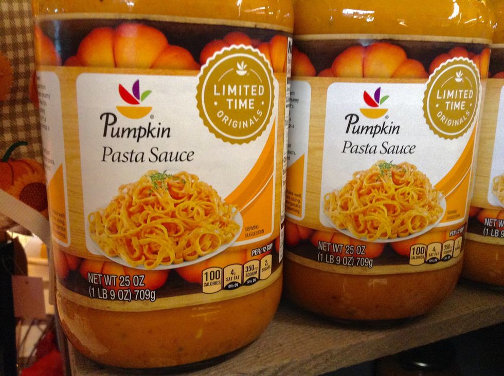 This is wrong on every level. Only the most daring Fall enthusiasts will delve into the supermarket looking for pumpkin spice pasta sauce. If this sounds appetizing to you, I hope that you will reconsider your priorities in life.
