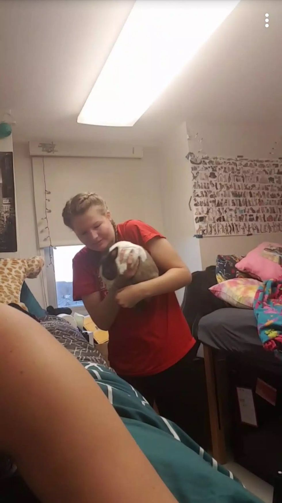 4. Twerking on one of our beds while talking to my bunny rabbit