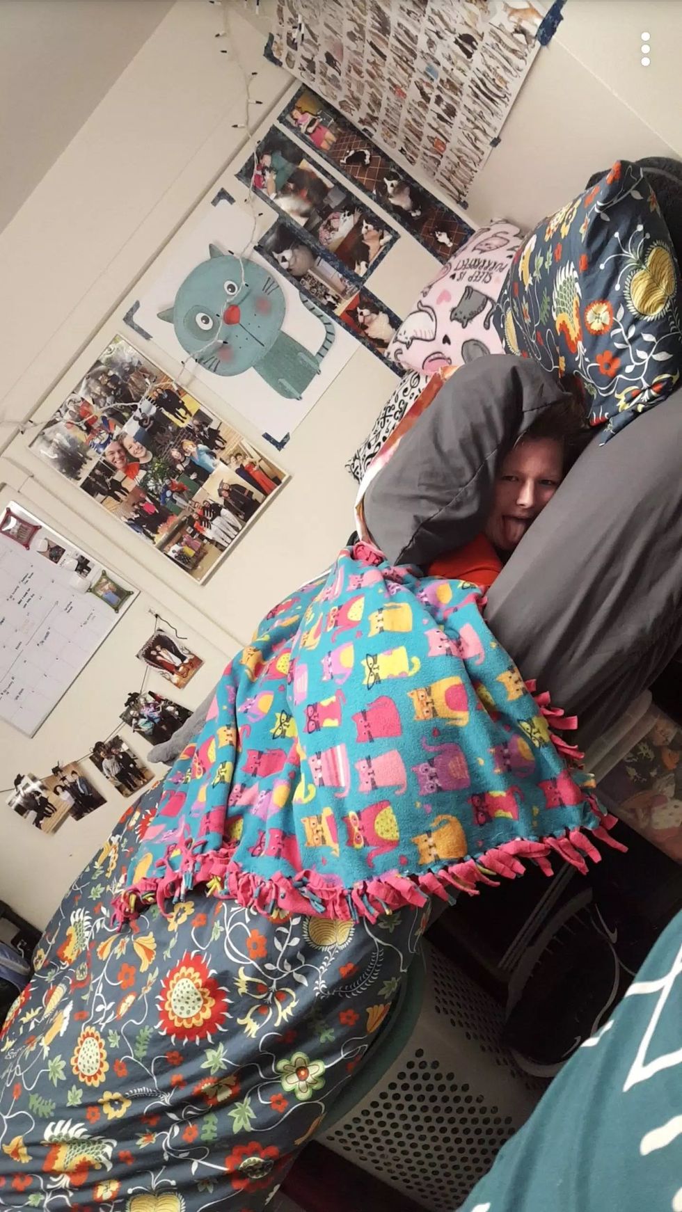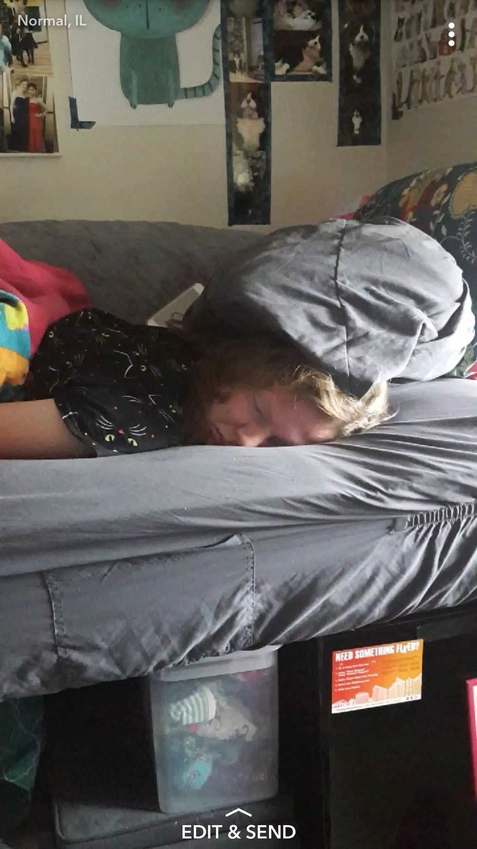 8. Thinking shes sleeping and then hearing concert band music blasting from under her covers