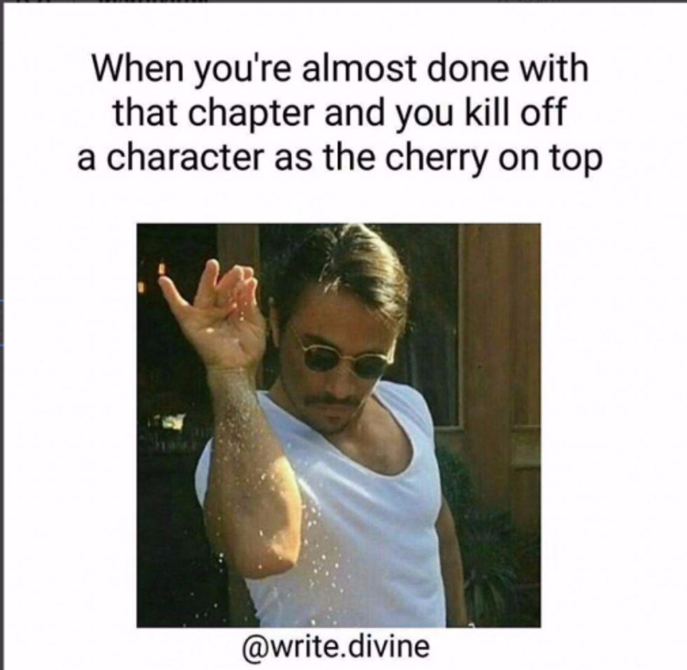 There is no greater rush than building up a scene to its beautiful climax: the death of a beloved character. Readers will cry, but us writers? We celebrate.