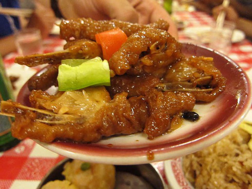 Chicken feet can also be found in numerous cultures and countries but the ones I've eaten (yes I actually tried them) were in NYC's oldest Chinatown Dim Sum place Nom Wah Tea Parlor. Even though they are pretty gross looking and on the slimy slide, it is pretty sweet tasting! Just don't choke on the bone.