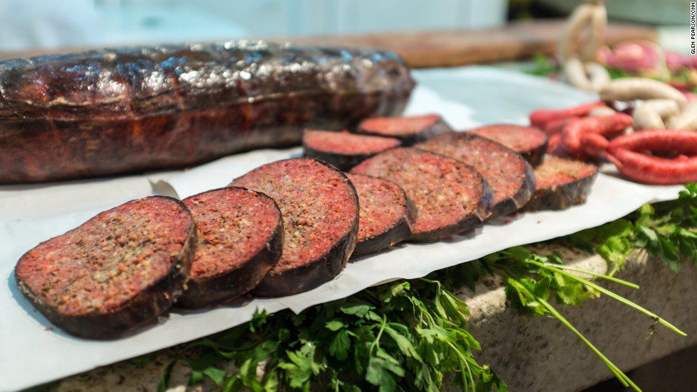 it is Stuffed Camel Spleen. Itās usually filled with beef or lamb, olives, spices, and a bit of hump fat and served in a sandwich!
