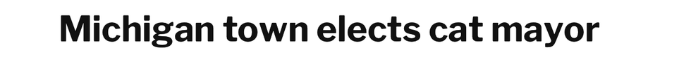 Sweet Tart is the adorable new mayor of a small Michigan town. Other candidates included another cat, 13 dogs, a peacock, a goat and a chicken.