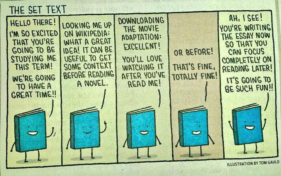 Hopefully returning students have an idea of what they want to do (unless you’re like your humble writer who just writes Odyssey articles to cheapen the anxiety of picking a major). Don’t get too flustered on the first week. Professors will most likely just read the syllabus to you (I know! What a valuable use of a tuition payment worth thousands of dollars!) and make you write a one-page summary about some old socialist guy complaining about something (this tends to happen a lot in college so get used to it!). Try not to zone out during class, though. Vital information is said at all times in lecture. Information about lateness, crappy online quizzes, and other assignments will be cleared up. Don't be that fool who can't find an online quiz because he worried more about his Snapchat streaks over his academics.
