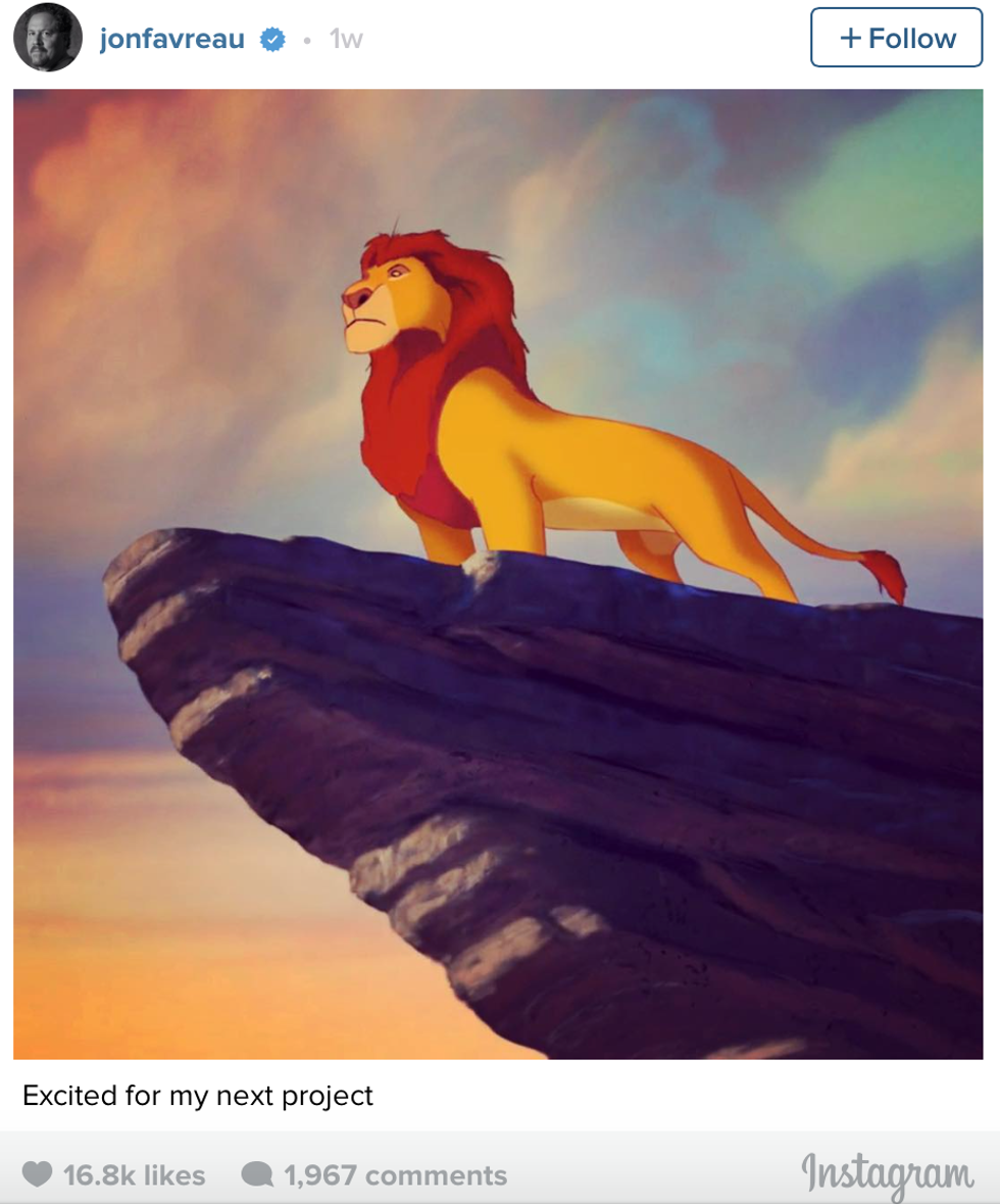 Favreau has continued the excitement for the upcoming movie with his recent Instagram post: