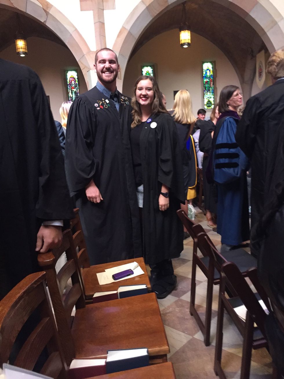 Fast forward exactly nine months and it is October 16, 2015. The Advent 2015 Opening Convocation will also be one that I remember, but for very different reasons. This time, my boyfriend asked me to gown him. For the two years that I have known him, I have watched him work diligently in his courses while also upholding his obligations as a varsity athlete. Knowing how special this day is for someone, I cannot describe how honored I was to be the person with whom he chose to share this precious occasion.