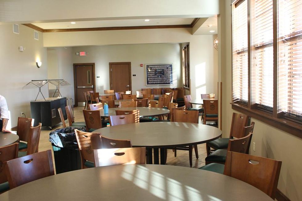 Personal living quarters can be found on the second floor. Each room holds two brothers, and the beds are placed on a loft, offering more privacy and space for the members. Walk-in closets add to the suite-style feel of the rooms, and the residential floors also contain spacious bathrooms and laundry rooms.