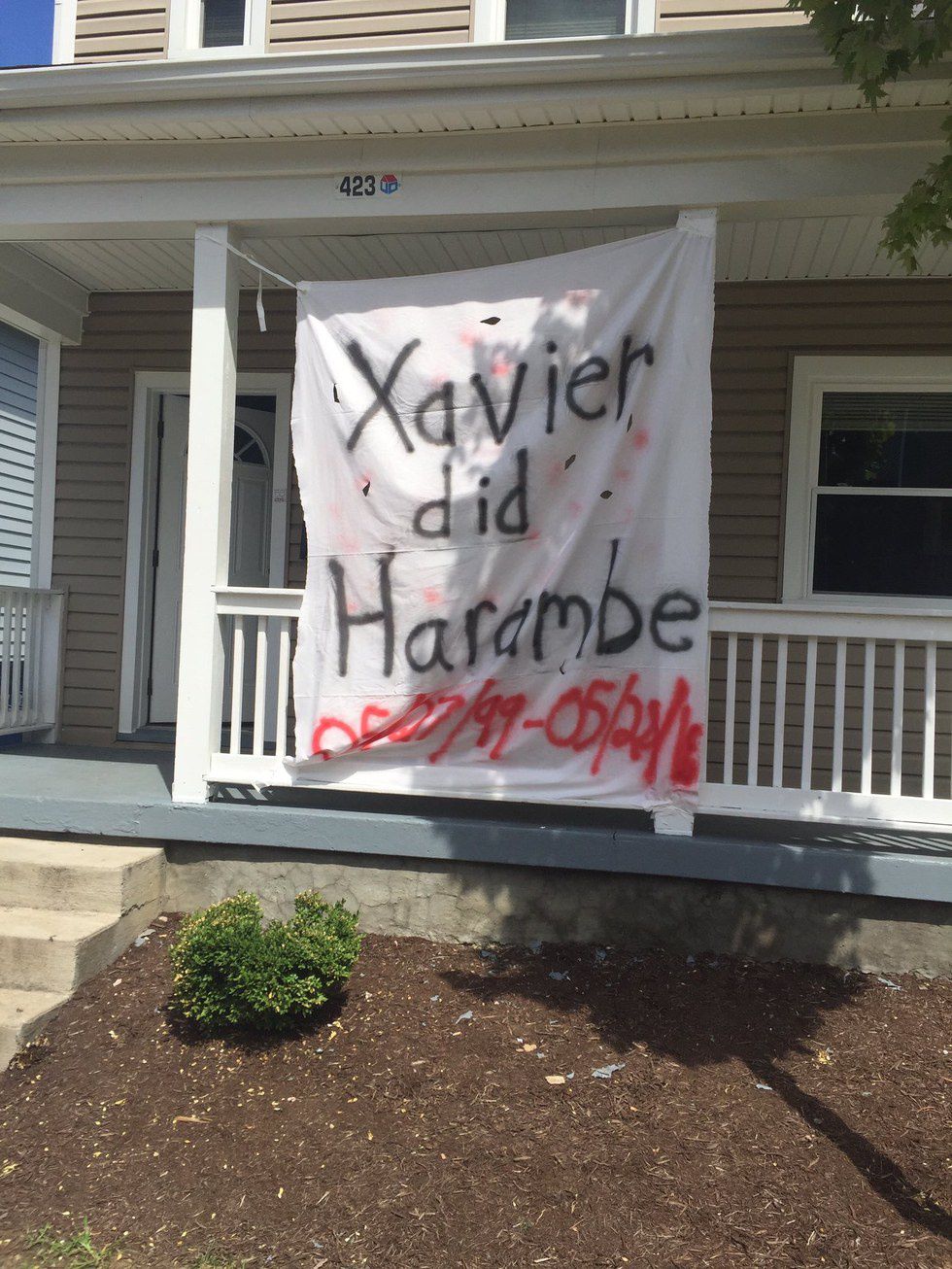 This is only one of the many Harambe sheet signs hanging around the Ghetto.