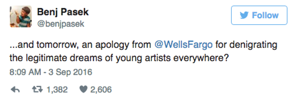 The main issue I have with this advertisement is that Wells Fargo assumes that artistic pursuits are inherently less valuable. It is an assumption that you must grow out of your dreams if they may not prove to be monetarily successful.