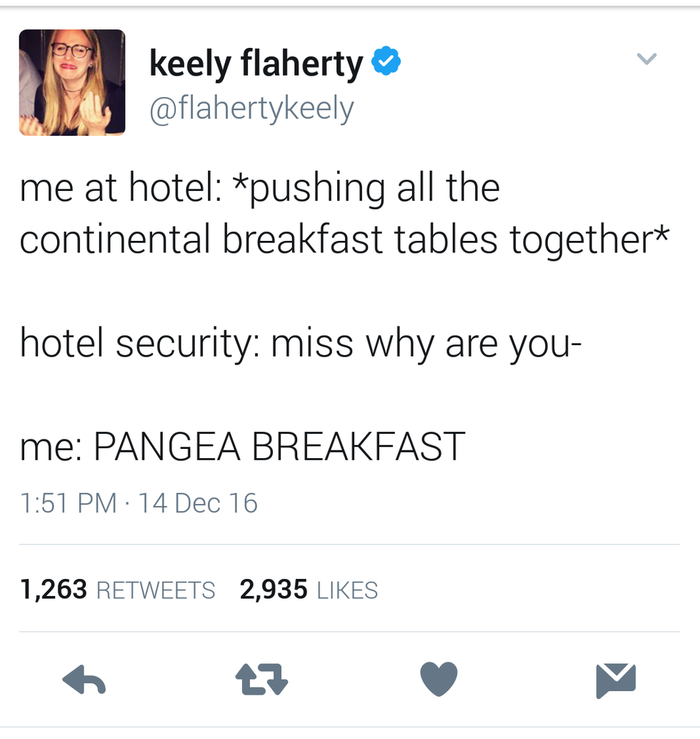 "The sign didn't say continental breakfast. I'm confused why security is here."