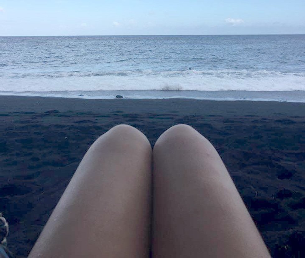 We spotted the beach from the top of the volcanic rock cliff. Of course there were people who didn't feel like taking off their clothes and that is fine too but it did help seeing at least some people in the nude. We hiked down the cliff side to the black sand beach, found a spot to put our stuff and immediately started stripping. I didn't have any time to think about what I was doing. All of a sudden, my clothes were off and I was in the water.