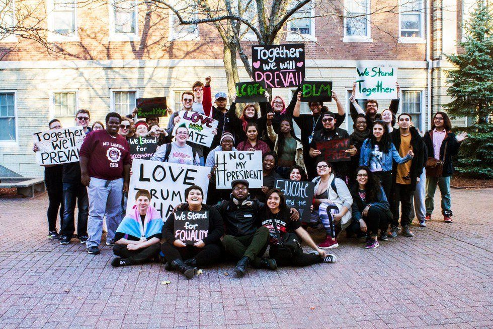 Yes, Ladies and Gentlemen, I went to those protests that are spreading like wild-fire all over the United States since Donald J. Trump won the 2016 Presidential campaign. But it wasn’t an I-Hate-Trump, flip off Trump supporters’ kind of protest, which seems to be the trend recently. But this was simply an anti-bigotry protest here at Monmouth College. It was more of taking a stand against the hate crimes that have spiked since Donald Trump has won the Presidential campaign.