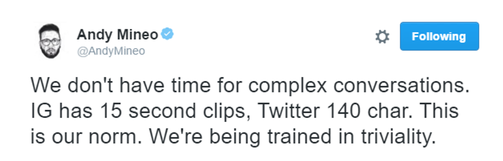 Students in college and people in general are seemingly always on the go. We always have something going on, somewhere to be next, or someone to see, so we rarely take time to stop and enjoy life or really find out what's going on with ourselves or others. The other day I saw this tweet and couldn't agree more: