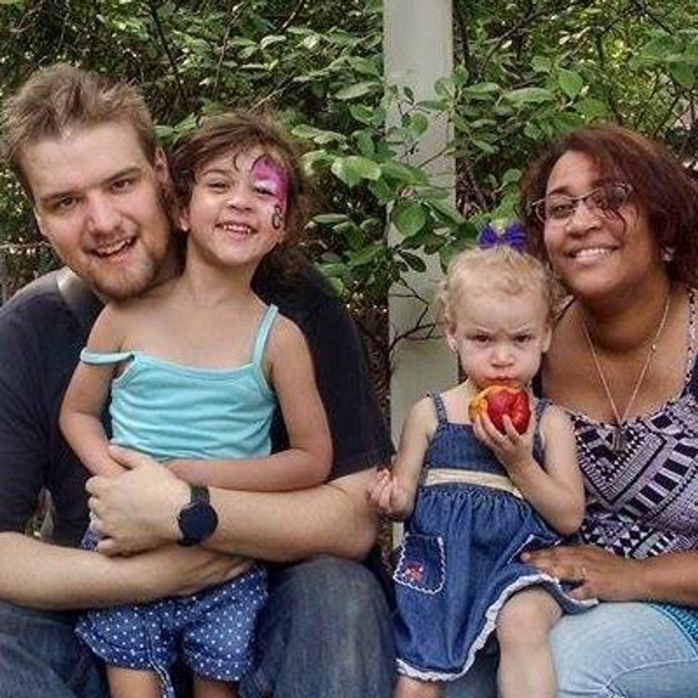 James with his wife and his two beautiful girls. I don't think his youngest is especially happy about having to sit still to get her picture taken.Actually, when I met him, he was "Jamie." And his hair was a bit lighter. And I was friends with his sister first, but we all used to play together in the sandbox in my backyard.