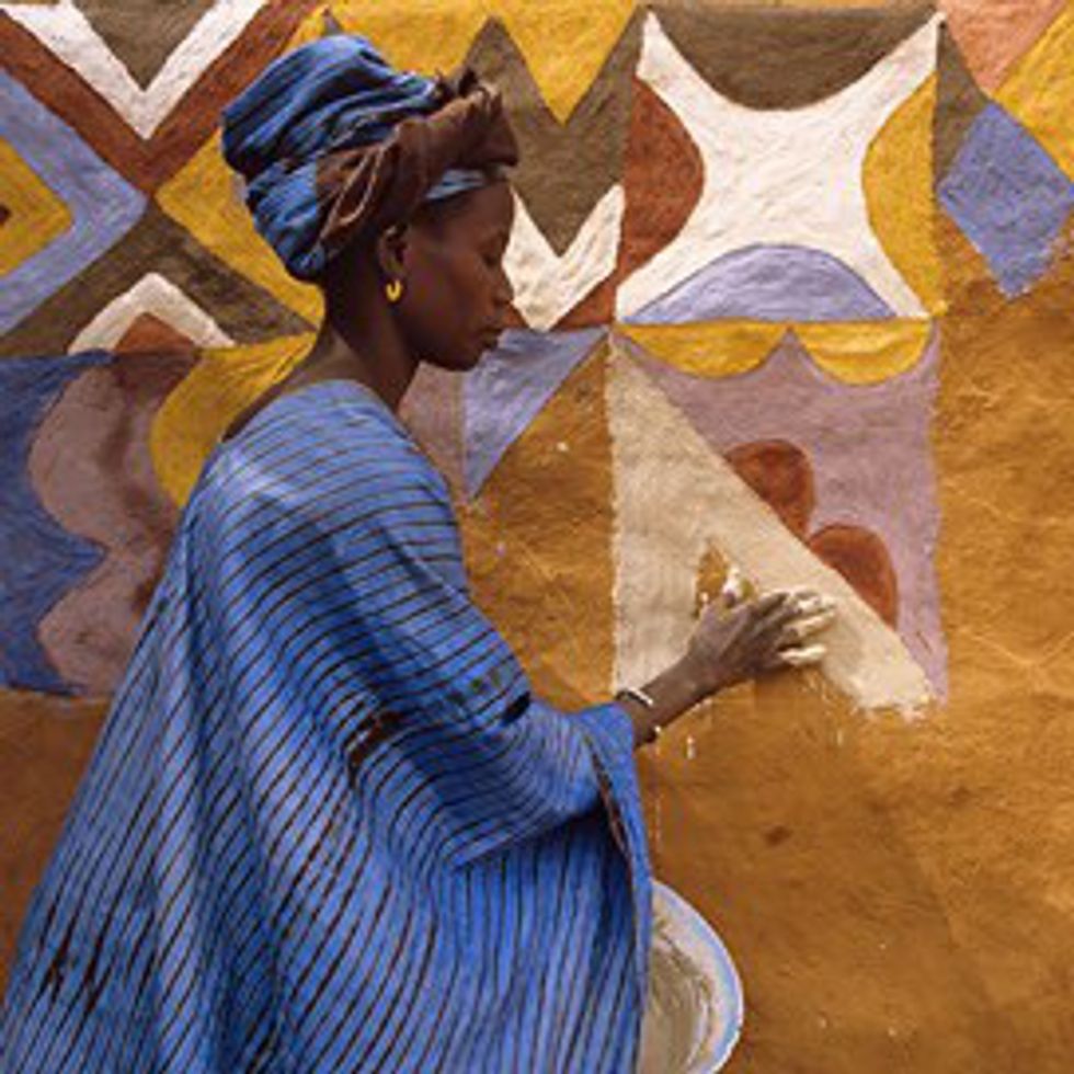 To me, these photos are specifically beautiful because you see these women putting in work to make these beautiful pieces of art while, at the same time, you see them putting in work in other ways, like carrying children on their backs or large pails. It serves to show that these women are dynamic and rounded and they have complexities beyond what we are seeing. The women make the medium with which they create the art using natural pigments from plants or clay. These pictures/paintings are often washed away in the rainy season.